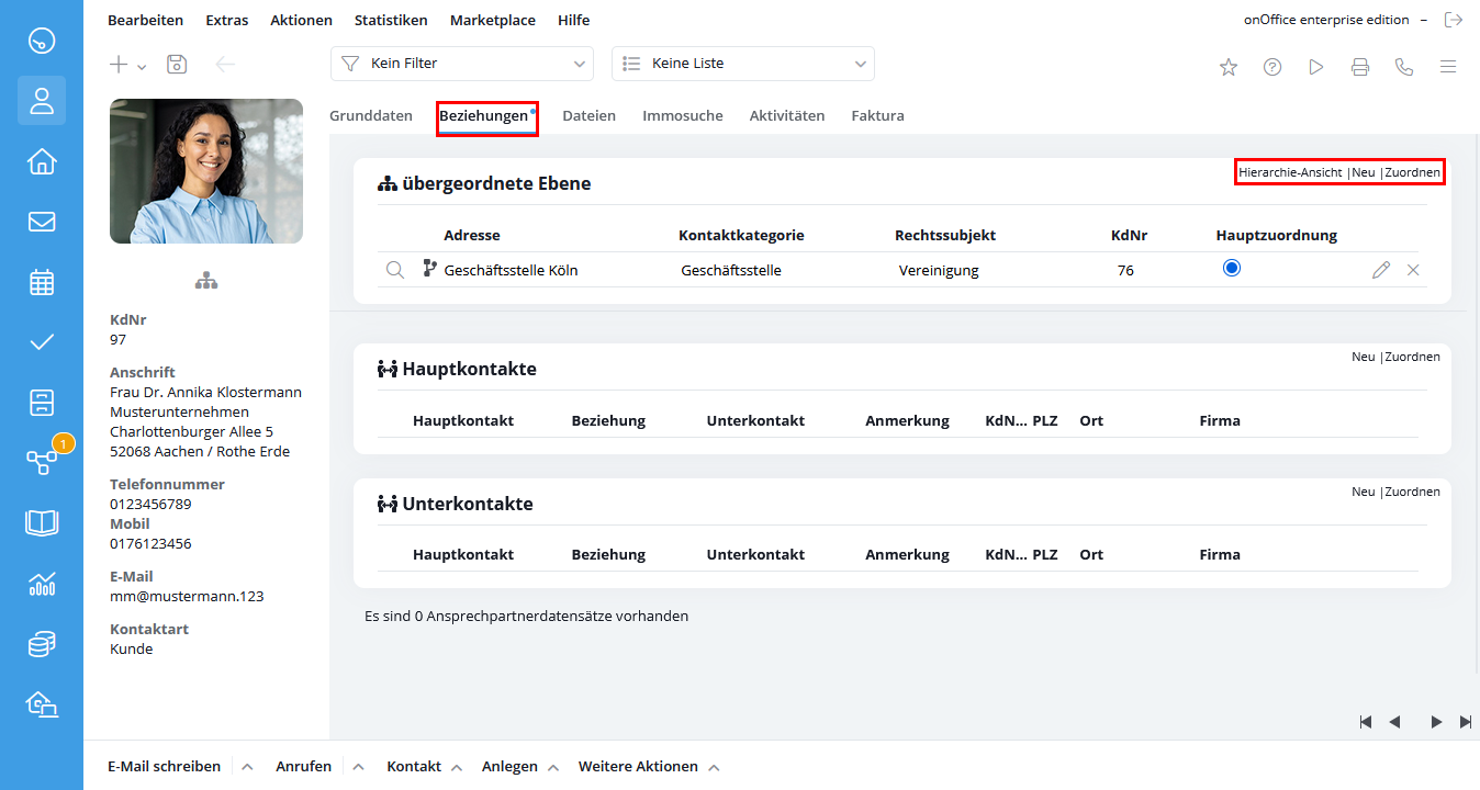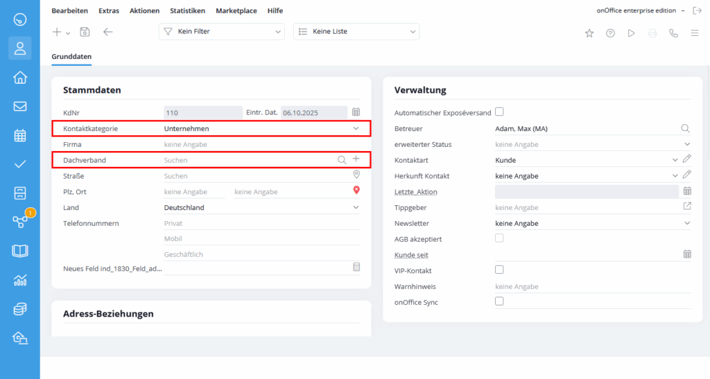 Mit den Kontaktkategorien können sie Ihre Kontakte einordnen und darüber Adress-Hierarchien von z.B. Unternehmen abbilden oder auch Eigentümer- / Erbengemeinschaften erstellen. Es sind individuelle mehrstufige Hierarchien möglich.