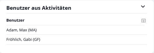 Die dritte Möglichkeit ist die ‚Benutzer aus Aktivitäten‘-Box. Diese Box können Sie ähnlich der Aktivitäten-Box in der Administration einstellen. Anders als bei der Aktivitäten-Box werden in dieser Box nur die Benutzer dargestellt, die in den Aktivitäten angegeben werden.