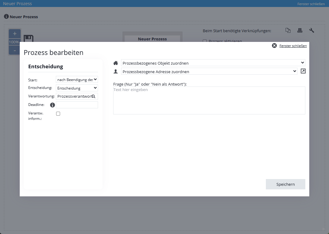Se la persona responsabile del processo per la decisione è diversa da quella della fase del processo precedente, alla nuova persona responsabile del processo viene inviata un’e-mail con la domanda che deve essere decisa. Nell’e-mail, l’utente può prendere una decisione utilizzando i pulsanti “Sì/No”. Il processo viene quindi proseguito nel ramo corrispondente. Tuttavia, il proprietario del processo può eseguire questo passaggio anche al di fuori della posta, in “Processi in esecuzione”