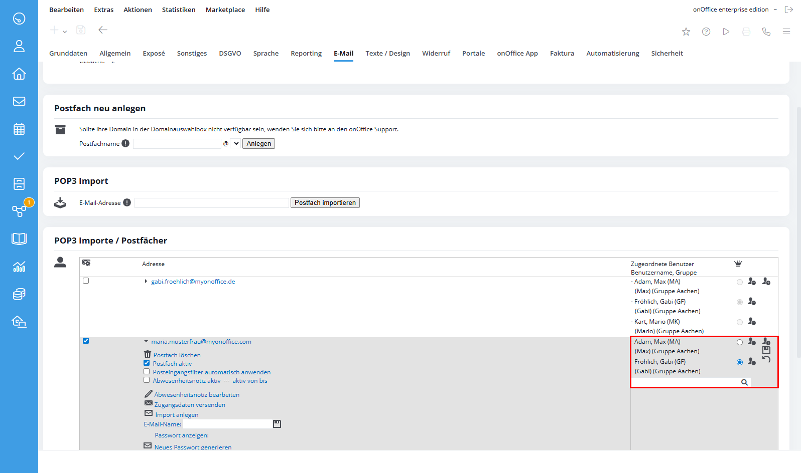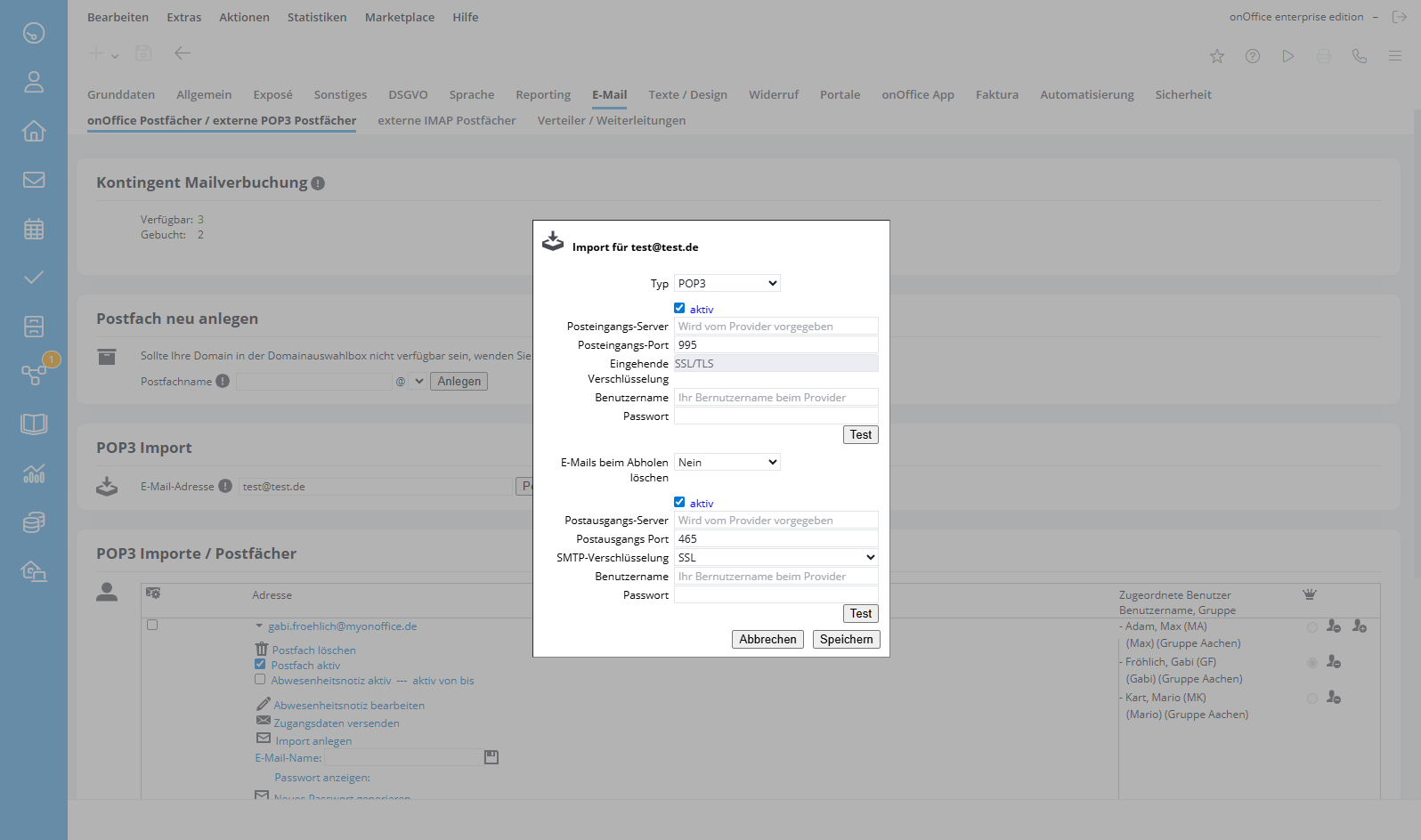 onOffice Postfächer / externe POP3-Postfächer einrichten