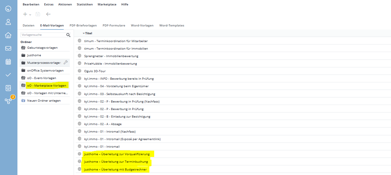 Una nota a riguardo: È possibile utilizzare il modello di Justhome dalla cartella “oO Modelli Marketplace” oppure copiare prima il modello e-mail in una delle tue cartelle per personalizzare il testo secondo le tue preferenze. - Salva il processo.