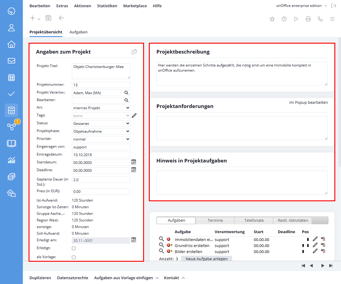 - Hinweis in Projektaufgaben: Tragen Sie hier nützliche Hinweise für das Projekt ein.