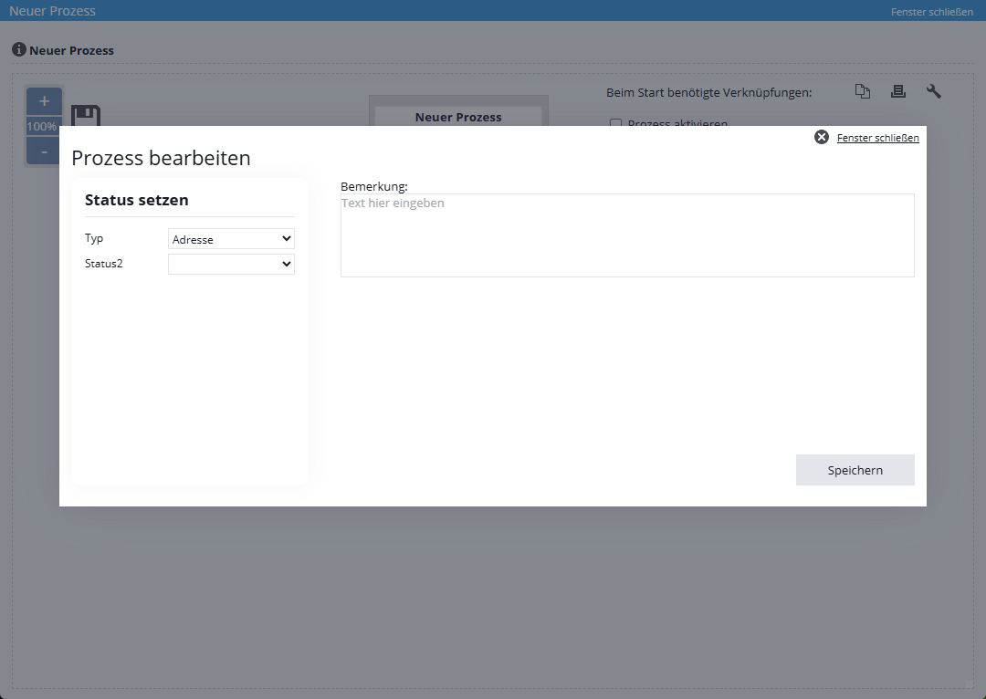 Sie befinden sich hier: Home / Zusatzmodule / Prozessmanager / Prozessvorlage / -schritte erstellen / Aktion Status setzen