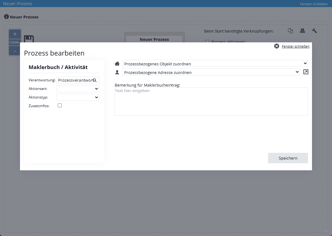 Sie befinden sich hier: Home / Zusatzmodule / Prozessmanager / Prozessvorlage / -schritte erstellen / Aktion Maklerbuch / Aktivität erstellen