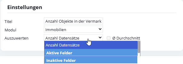 - Aufsummierung bestimmter Eigenschaften aus Immobilien oder Adressen (aktive / inaktive Zahlen-Felder)
