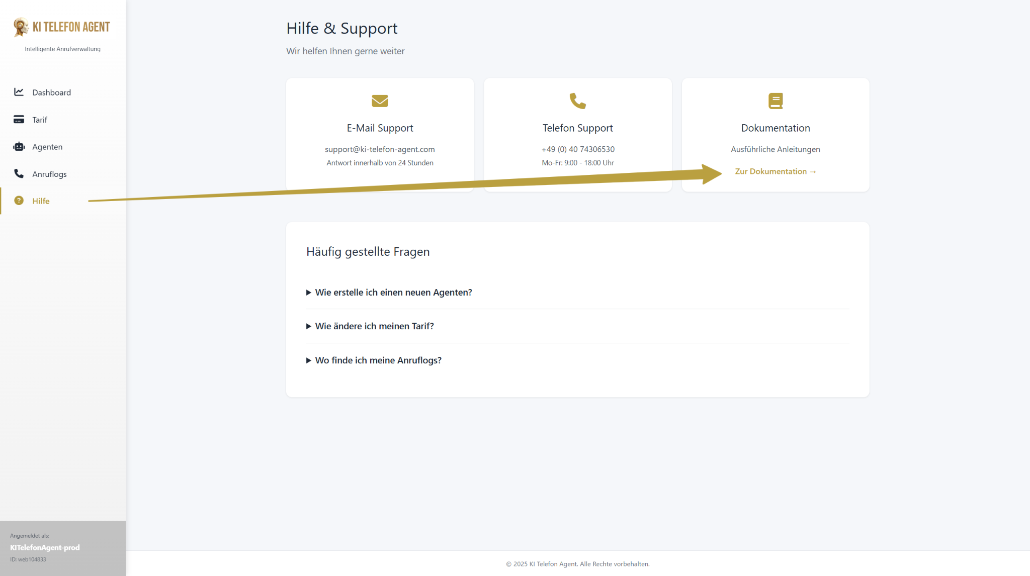 Die hier gezeigten Schritte decken die Inbetriebnahme ab. Die wahre Stärke des Agenten liegt jedoch in der Detailanpassung. Sie können die Stimme weiter verfeinern, Gesprächsabläufe im „Prompt“ anpassen oder viele weitere Aktionen hinzufügen. Für eine detaillierte Anleitung zu allen fortgeschrittenen Möglichkeiten empfehlen wir Ihnen unsere vollständige Softwaredokumentation.